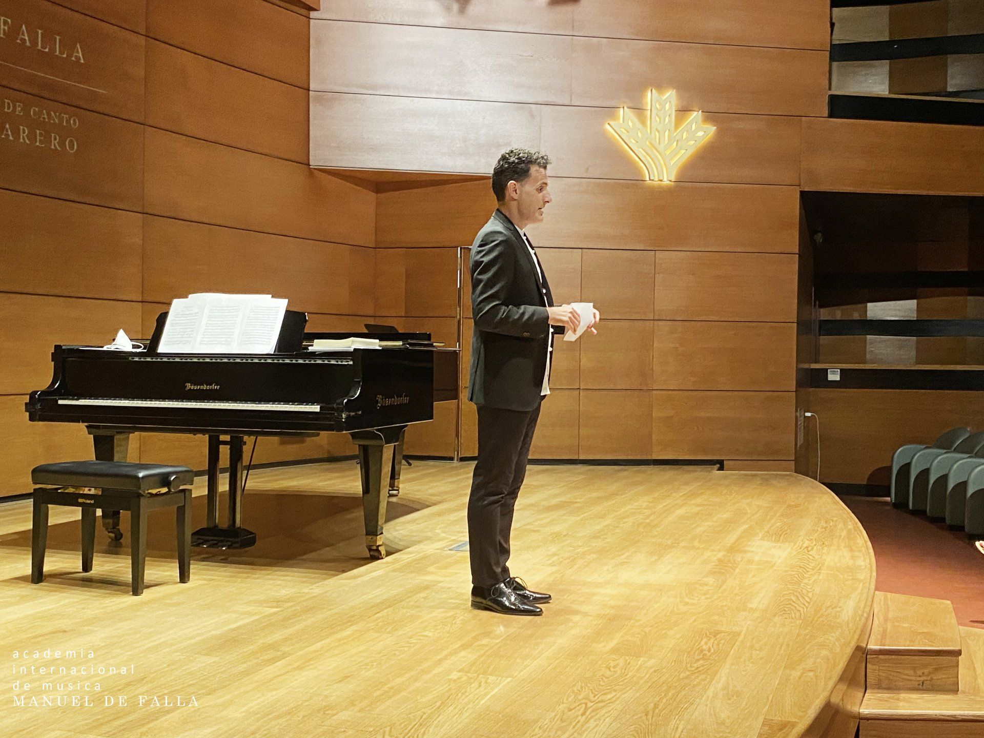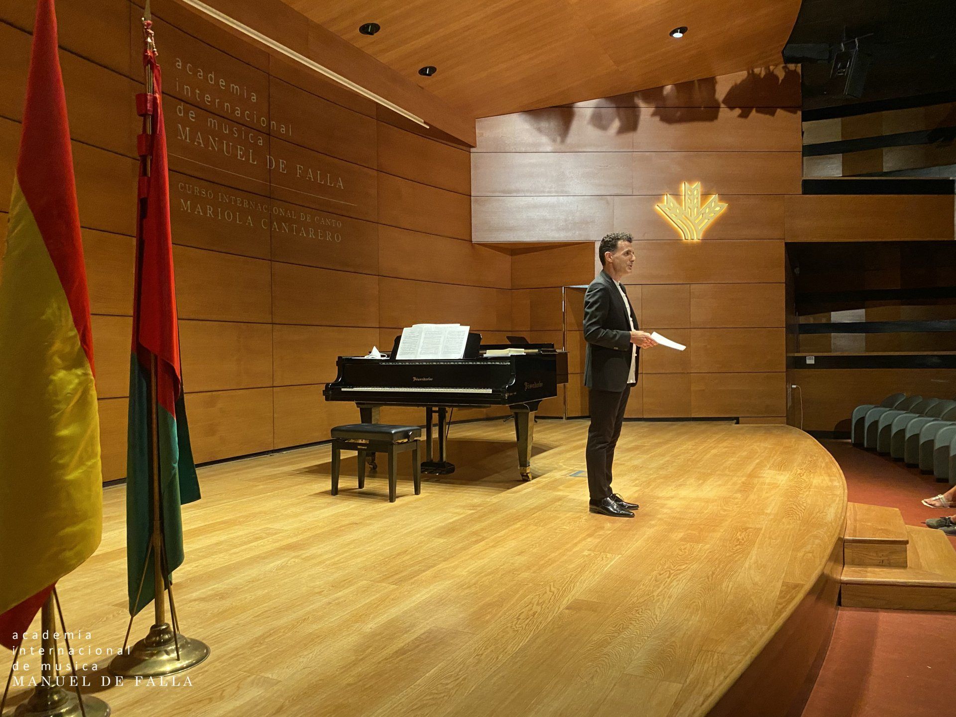Comienzo del curso, presentación: Lunes 21 de julio. 10:00h. En el Auditorio de la Fundación Caja Rural de Granada (Avda. Don Bosco 2, 18006, Granada) a cargo de Mariola Cantarero, Antonio José Henares y el pianista Ambrosio Valero, director de la Academia Internacional de Música Manuel de Falla.